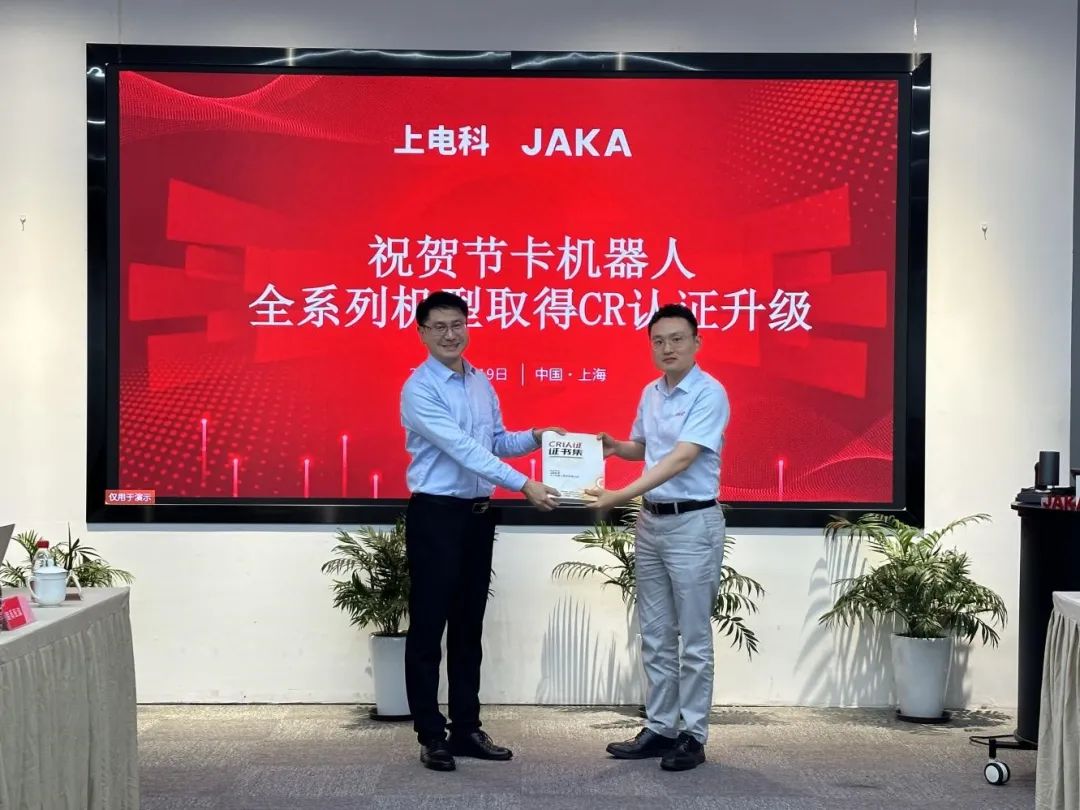 9月19日,国家机器人检测与评定中心(总部)为节卡机器人颁发了协作机器人全系列CR认证“001”证书。