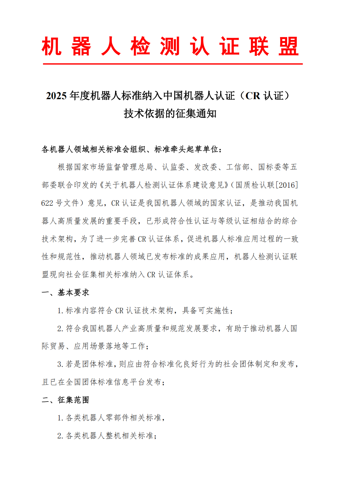 中国机器人认证(China Robot Certification,简称CR认证),于2016年由国家认监委、原质检总局联合国家发改委、工业和信息化部等部门向社会发布实施,是世界范围内唯一由国家推动的高端认证。