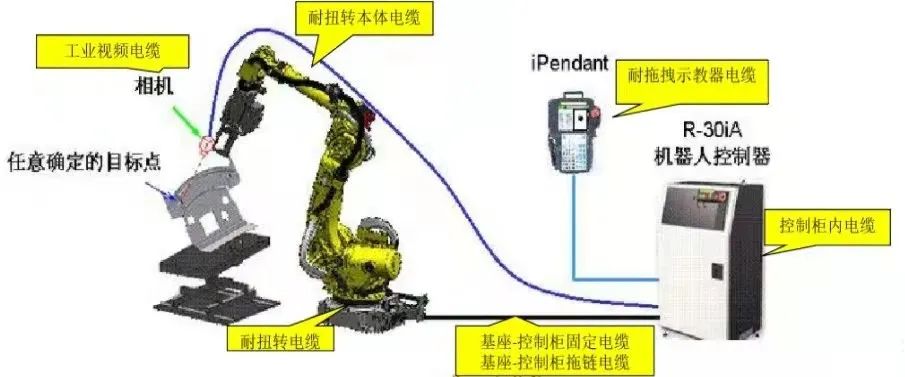 机器人电缆作为工业机器人核心零部件之一,用来进行信号传输、控制及电源动力传输。机器人电缆包括本体电缆、基座电缆、示教器电缆、控制柜内电缆等,与普通电缆相比,机器人电缆一般移动使用,且弯曲半径小,需要承受弯曲和扭转运动的应力,例如本体电缆在整个寿命周期中随着机械臂的周期运动,承受数百万次以上的弯曲、扭转或弯扭组合的载荷作用;而基座中的拖链电缆则承受拖链运动的应力。一旦电缆失效,则导致信号中断,机器人无法正常控制,造成人员和财产损失。