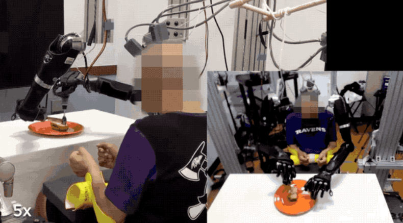 之后在吃蛋糕实验中,参与者可以根据自己喜好微调机械臂控制切下蛋糕的大小,实现了双手协调的精细操作。