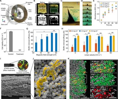 他们的创新产生于一个偶然的机会。宾夕法尼亚州牙科医学和宾夕法尼亚州工程的研究小组都对氧化铁纳米颗粒感兴趣,但原因非常不同。Koo的研究小组对纳米粒子的催化活性很感兴趣。它们可以激活过氧化氢,释放自由基,从而杀死导致蛀牙的细菌并降解牙菌斑生物膜。与此同时,Steager和工程界的同事,包括Vijay Kumar院长和CiPD联合主任Kathleen Stebe教授,正在探索这些纳米粒子作为磁控微型机器人的构建块。