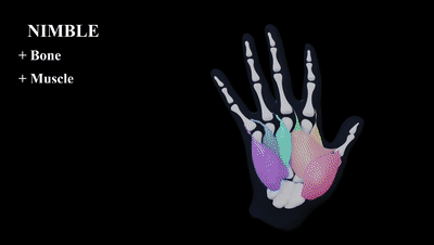针对这个问题,一个虚拟手建模的解决方案——NIMBLE 模型由解剖学的角度提出,NIMBLE 开发团队建立了一个全新的参数化手部模型,模型包含骨骼、肌肉、皮肤和外表面贴图,拥有更精细的皮肤材质纹理,可以轻松完成各式各样的手势,真实还原手部肌肉状态。