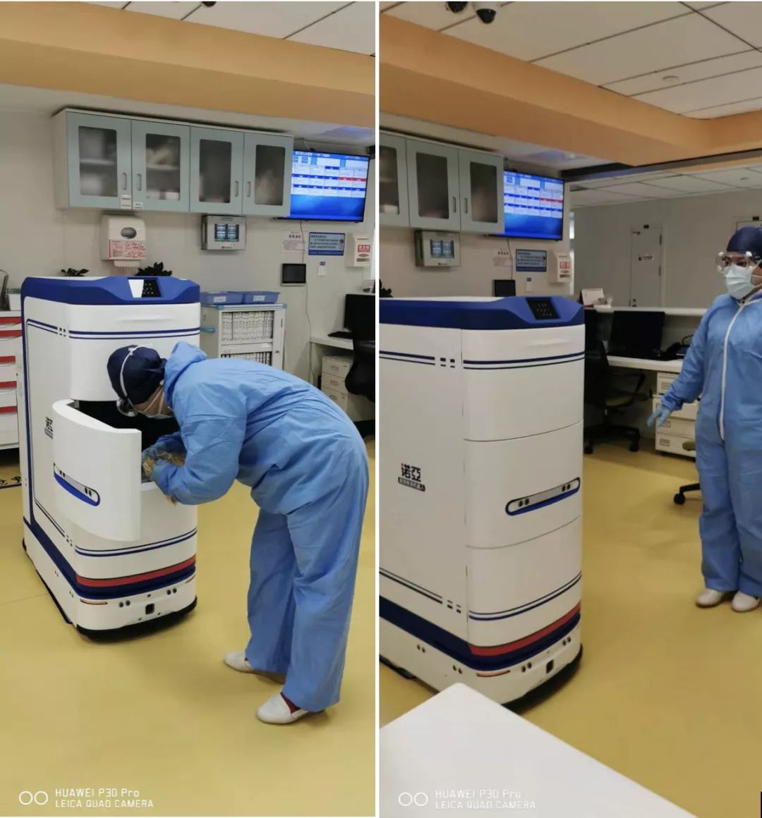 作为第四批发热病人定点收治医院之一,武汉亚心总医院9台诺亚全院物流机器人在用,分别在手术室、药房、中心供应室和麻醉科使用。医护人员只需通过PAD呼叫机器人,并往机器人货柜装入物资后,机器人就会前往目的地。全程自动化,无需人工参与,更大限度避免了人与人接触,降低了交叉感染的风险。而另外几台诺亚也在定点收治医院的华中科技大学附属同济医院和武汉市中心医院的手术室使用,保障新冠疫情下的院内智能配送,防范院内感染风险。