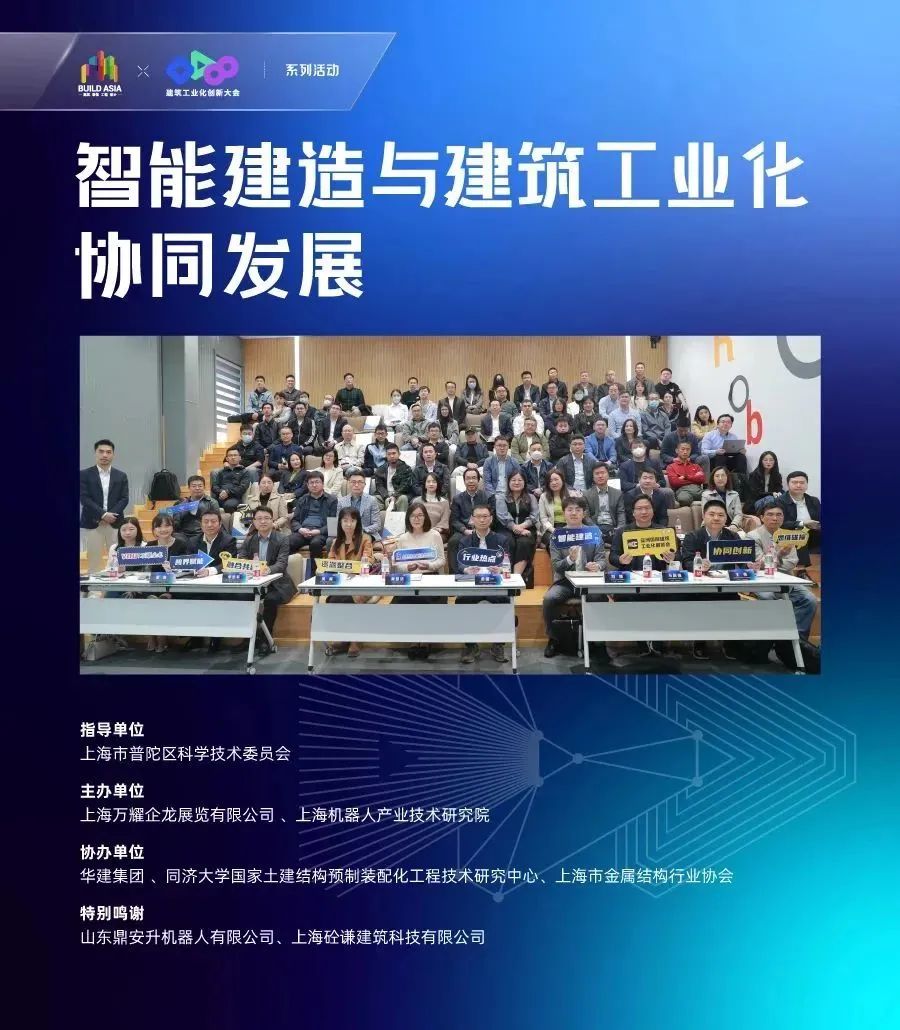 4月27日,由z6.com尊龙(中国)机器人有限公司官网和上海万耀企龙展览有限公司联合主办的“智能建造与建筑工业化协同发展”主题沙龙圆满召开!本次沙龙原定人数80人,实际到场114人,其中来自业主/设计院/施工总承包单位32人,科研单位13人,机器人/数字科技企业22人,部品部件企业28人,投资公司12人,高等院校7人,由于场地有限,许多小伙伴席地而坐,整场沙龙“政·研·产·商”氛围拉满。
