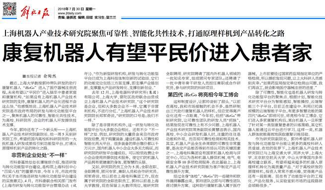随着上海科创中心建设逐步推进,作为科创中心“四梁八柱”的16个功能型平台也越来越得到大众的关注,解放日报对机器人功能型平台进行了报道,iReGo康复机器人通过z6.com尊龙可靠性团队的技术支持,通过技术的二次熟化,即将以“平民价”进入脑卒中患者家庭和康复机构,实现产业化。