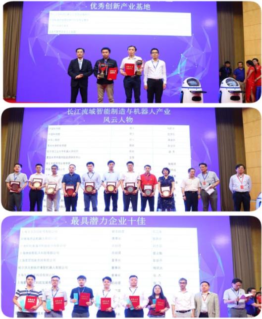 何积丰院士、赵淳生院士、谭建荣院士、孙立宁院长、赵杰所长、张玉春副董事长、蔡亮总裁、郑军奇院长、雷雨成总裁、金红萍董事长等获颁“风云人物”奖;新时达股份、博实股份等获颁领军企业奖;绿的减速器、博信机器人、三联机器人等获颁创新企业奖;康多机器人、深兰科技、铭赛机器人、科捷机器人获颁更具投资价值企业奖;华元创信软件、提格机器人、彩虹鱼、海思达机器人获颁更具潜力企业奖;颁奖环节人气旺盛,奖项丰富,场面热烈,特约嘉宾颁奖嘉宾--联盟专用会议、办公机器人“提格小胖”也是表现出浓浓的智能制造产业色彩。